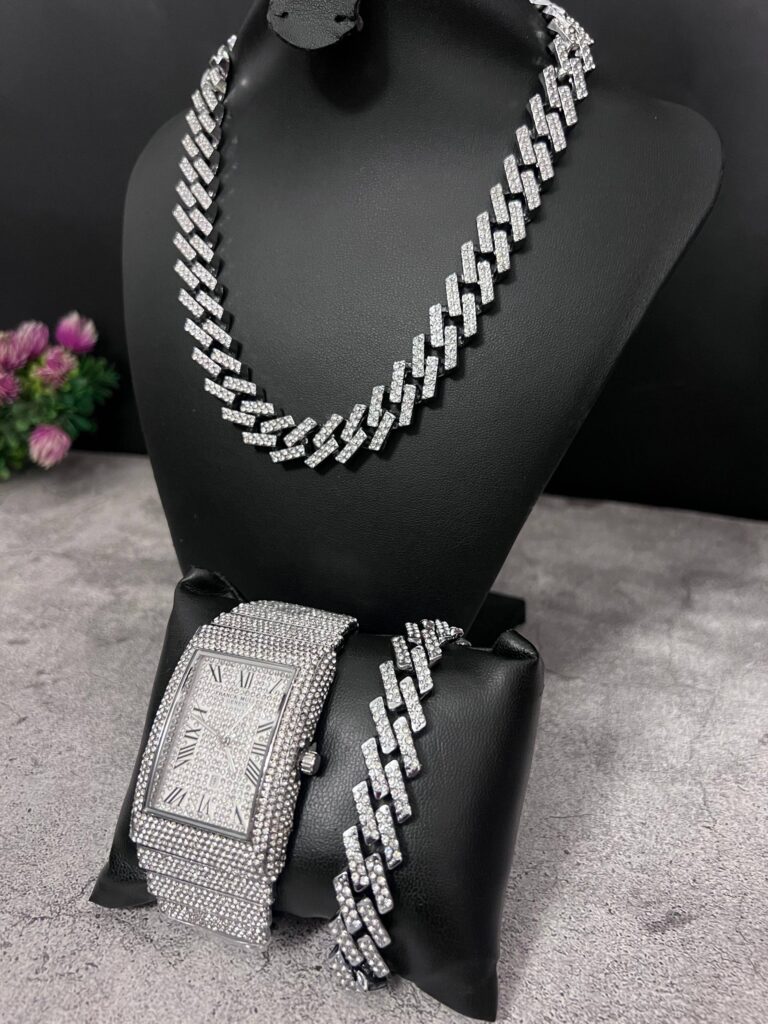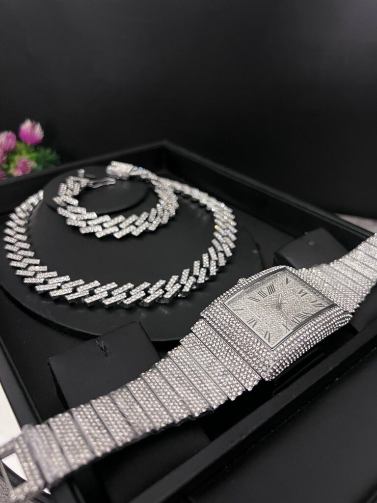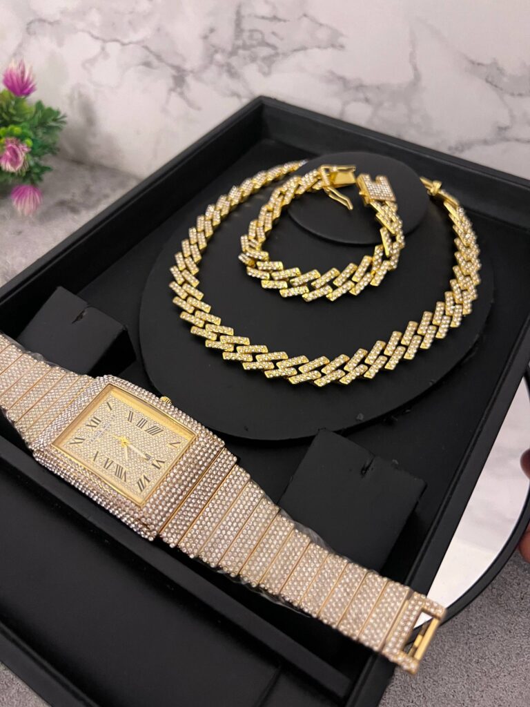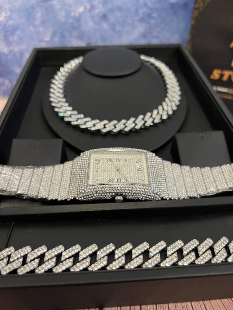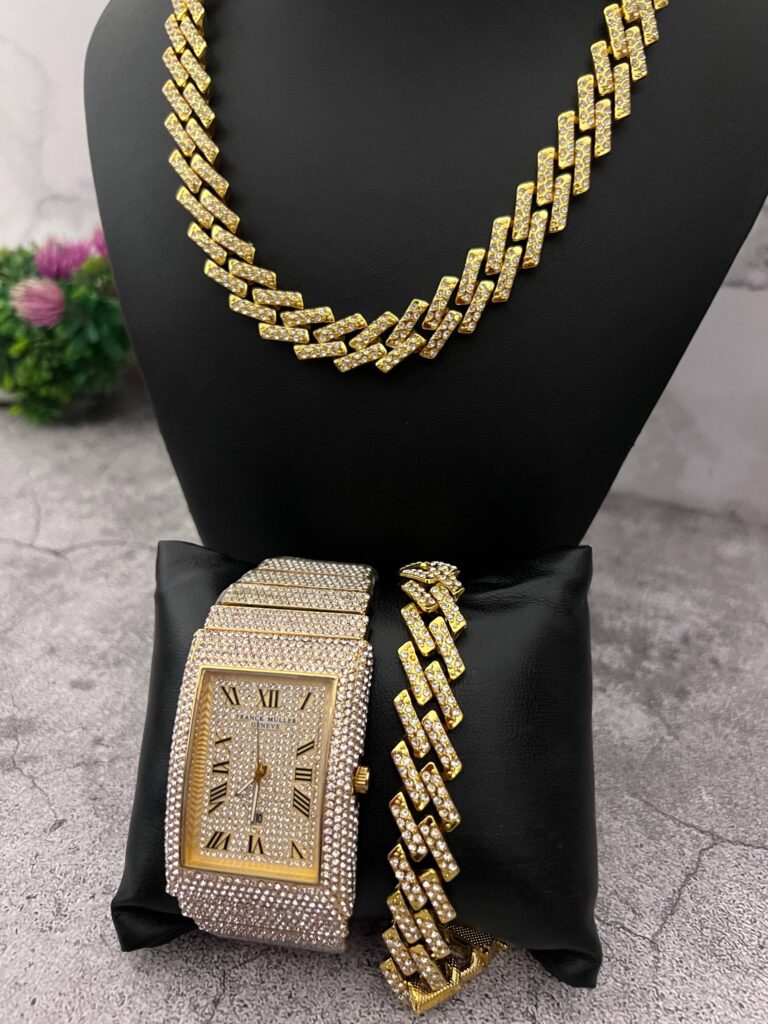 FULL PACKAGE: Luxury Ice Watch + Hand Chain + Neck Chain + FREE Perfume