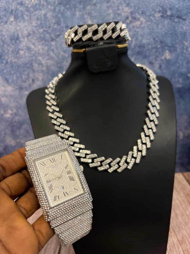 Full Package: Luxury Ice Watch + Hand Chain + Neck Chain + Perfume + FREE Delivery –> ₦130,000